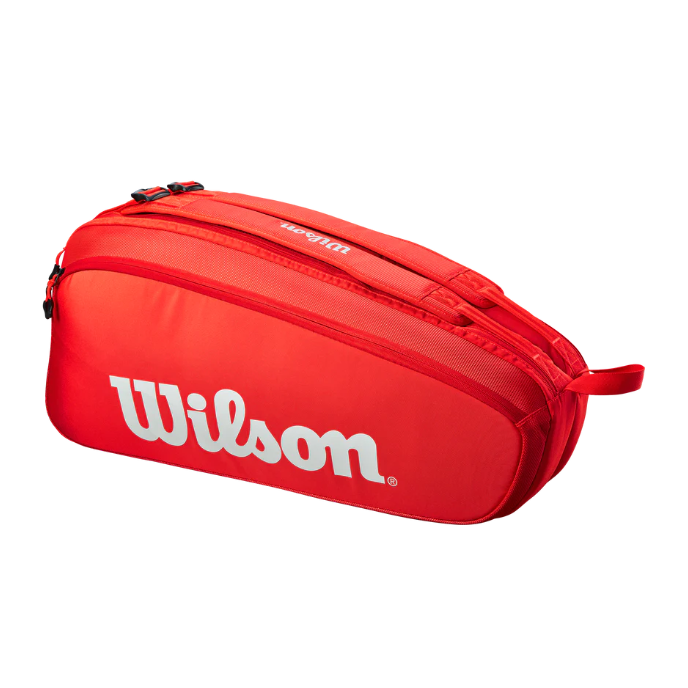 Introducing the Wilson Bela Super Tour Padel Red Padel Bag, designed for the serious padel player. With its spacious interior, durable materials, and ergonomic design, this bag not only helps keep your padel gear organized, but also protects it during transport. Elevate your game with the Wilson Bela Super Tour Padel Red Padel Bag.