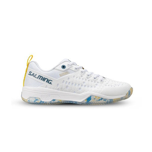 Introducing the Salming Rebel 23 White Shoes. Crafted with high-quality materials, these shoes are designed to provide optimal performance and comfort. With a stylish white design, these shoes are a perfect choice for athletes and fitness enthusiasts. Experience the ultimate combination of style and function with the Salming Rebel 23 White Shoes.